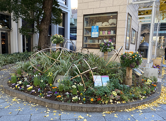 バスケットにはパンジー・葉牡丹のほか、チューリップの球根を隠し植えています。春が待ち遠しいですね!